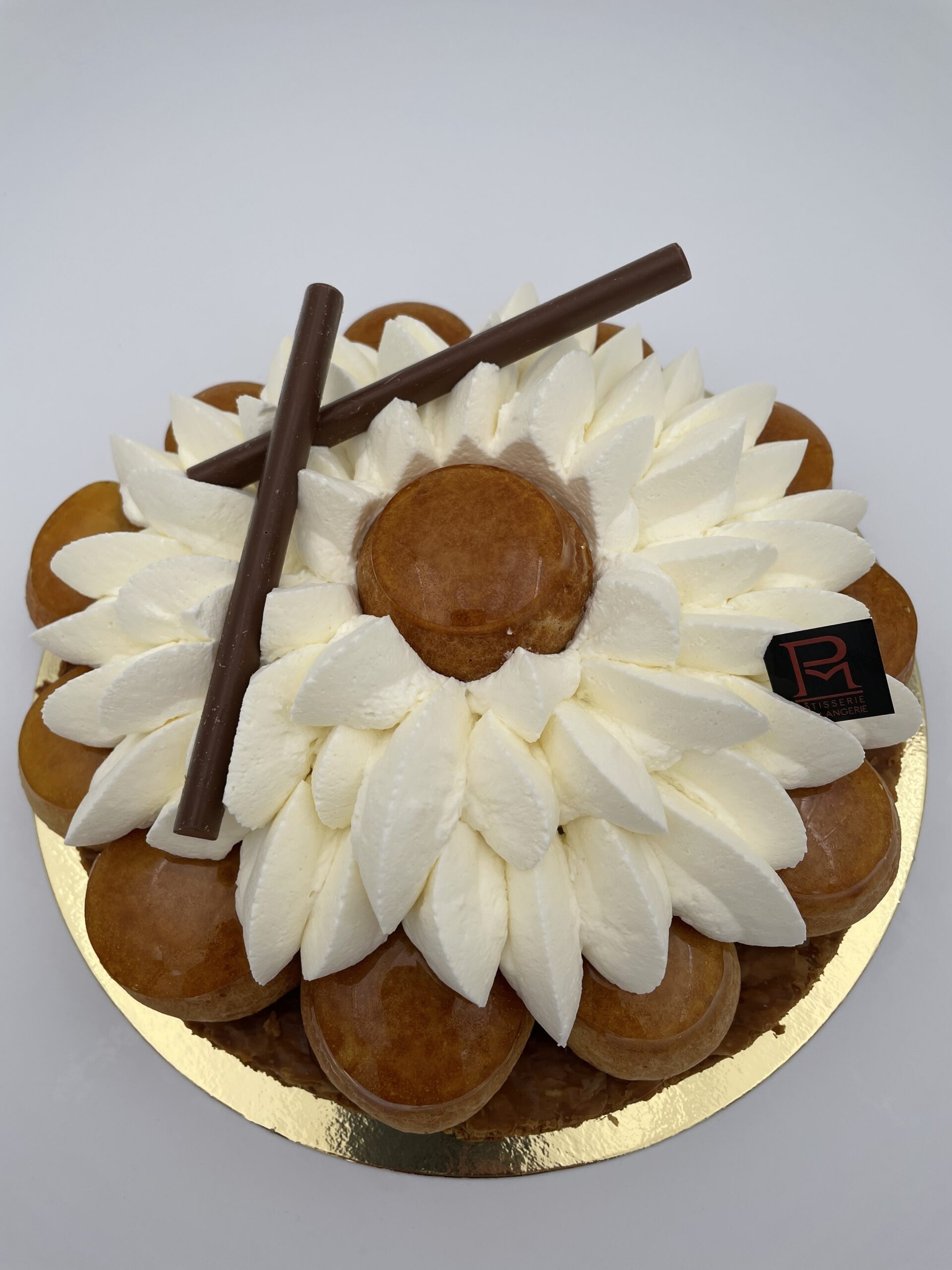 Sa base feuilletée croustillante accueille de délicats choux garnis de crème vanille, nappés d’un caramel doré pour la touche croquante.